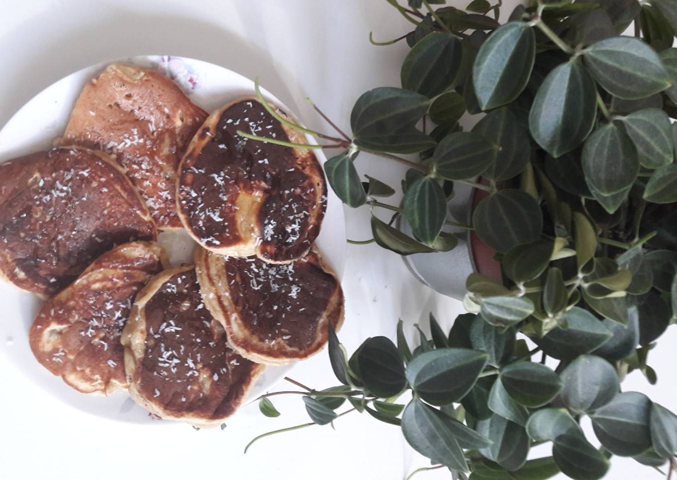 - Une fois cuit, mettez les pancakes dans une assiette et saupoudrer de coco râpées et de miel.